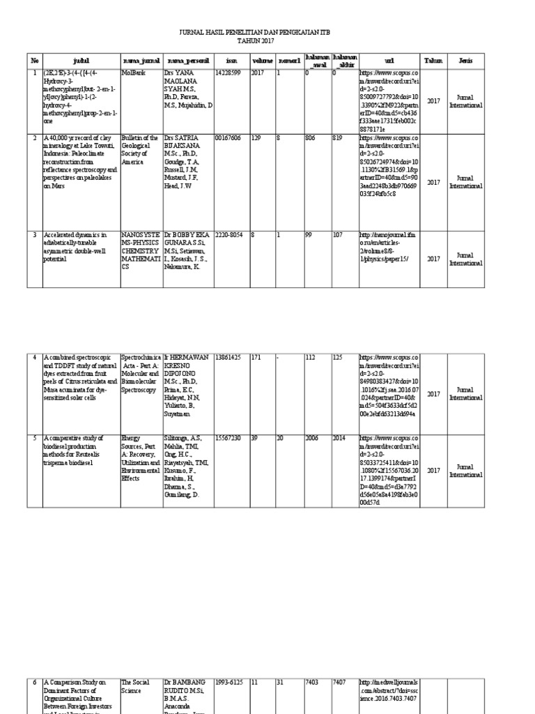 Daftar Publikasi Itb Tahun 2017 Pdf Pdf Nature